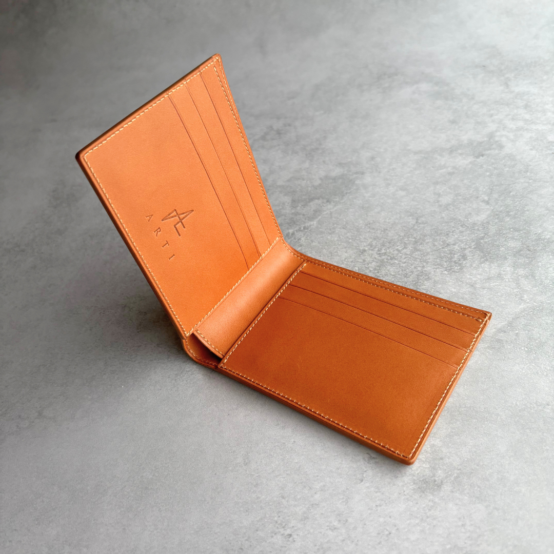 携帯性と品の良さを両立した、コンパクトな二つ折り財布