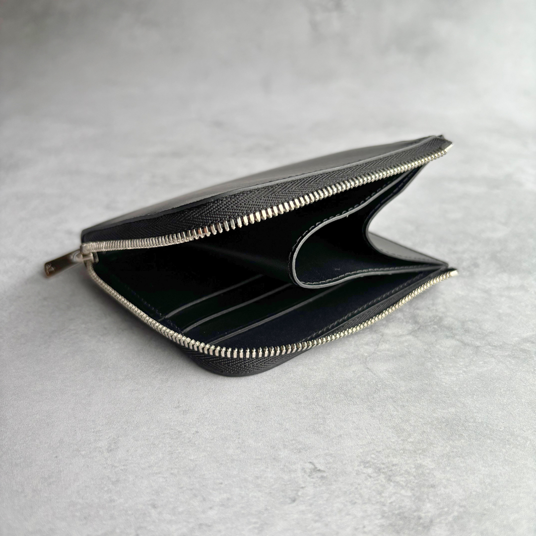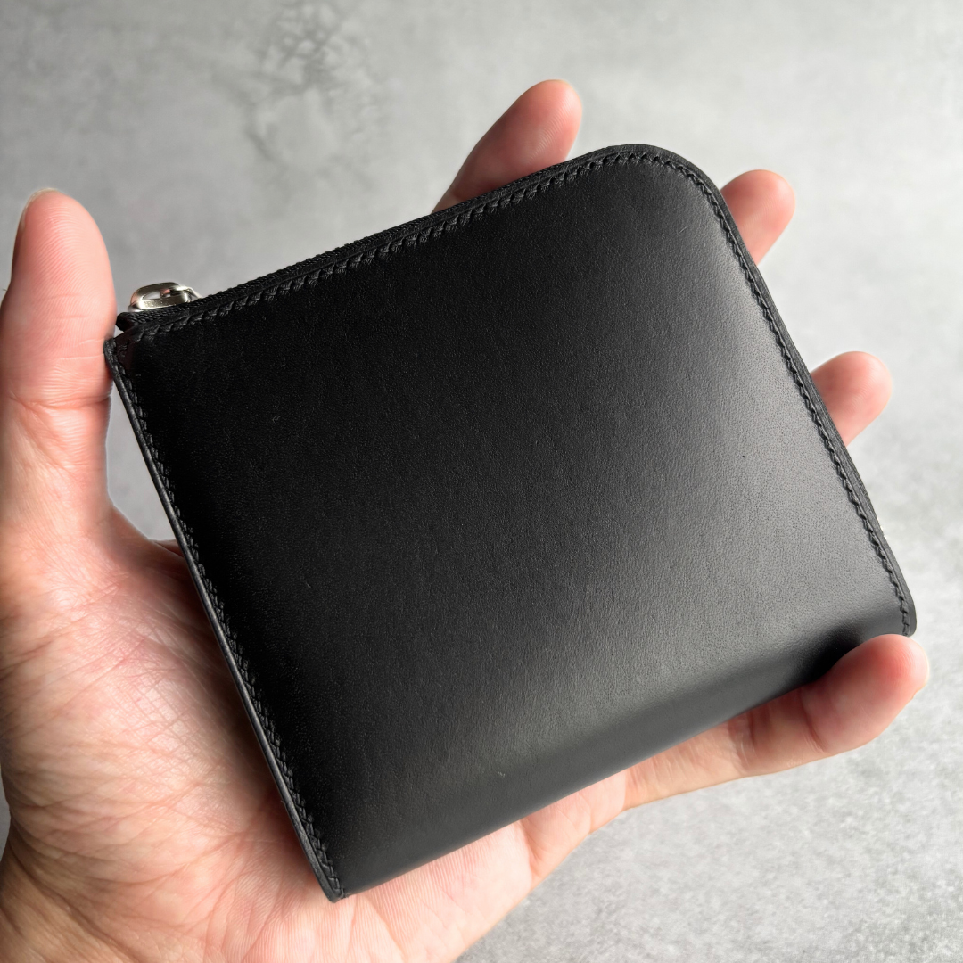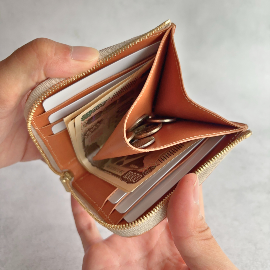 カード、お札、硬貨が全て入って手のひらサイズに収まるシンプルな財布です。