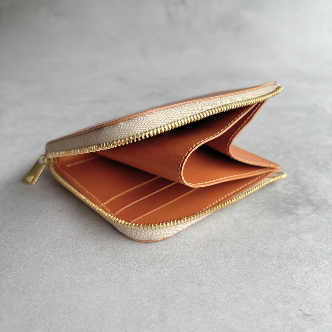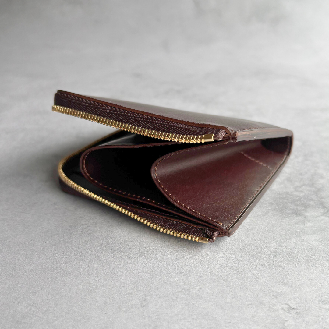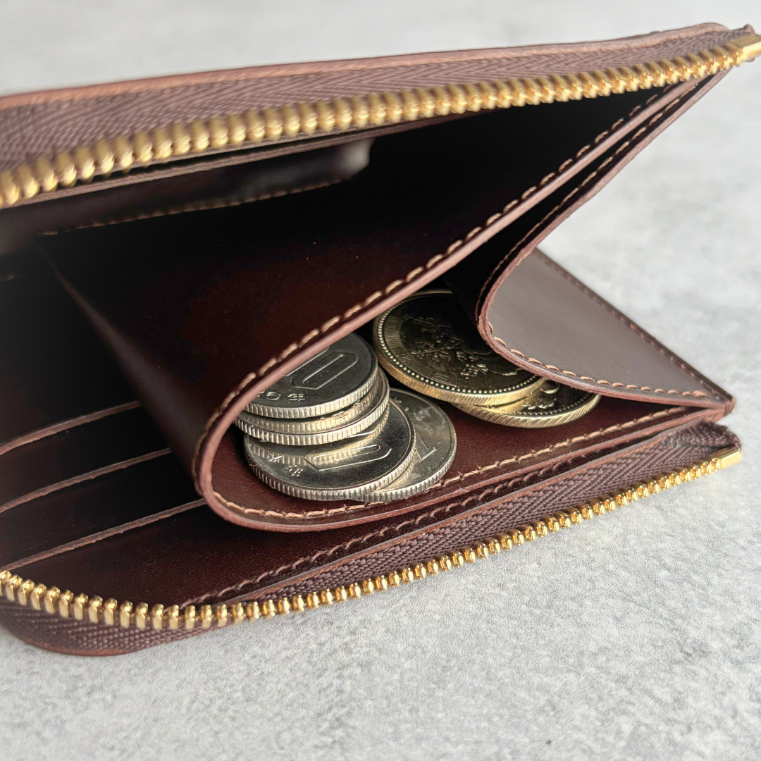マチの裏側やコインポケット内部など、見えにくい部分にもすべて革貼りを施す贅沢な仕立て。