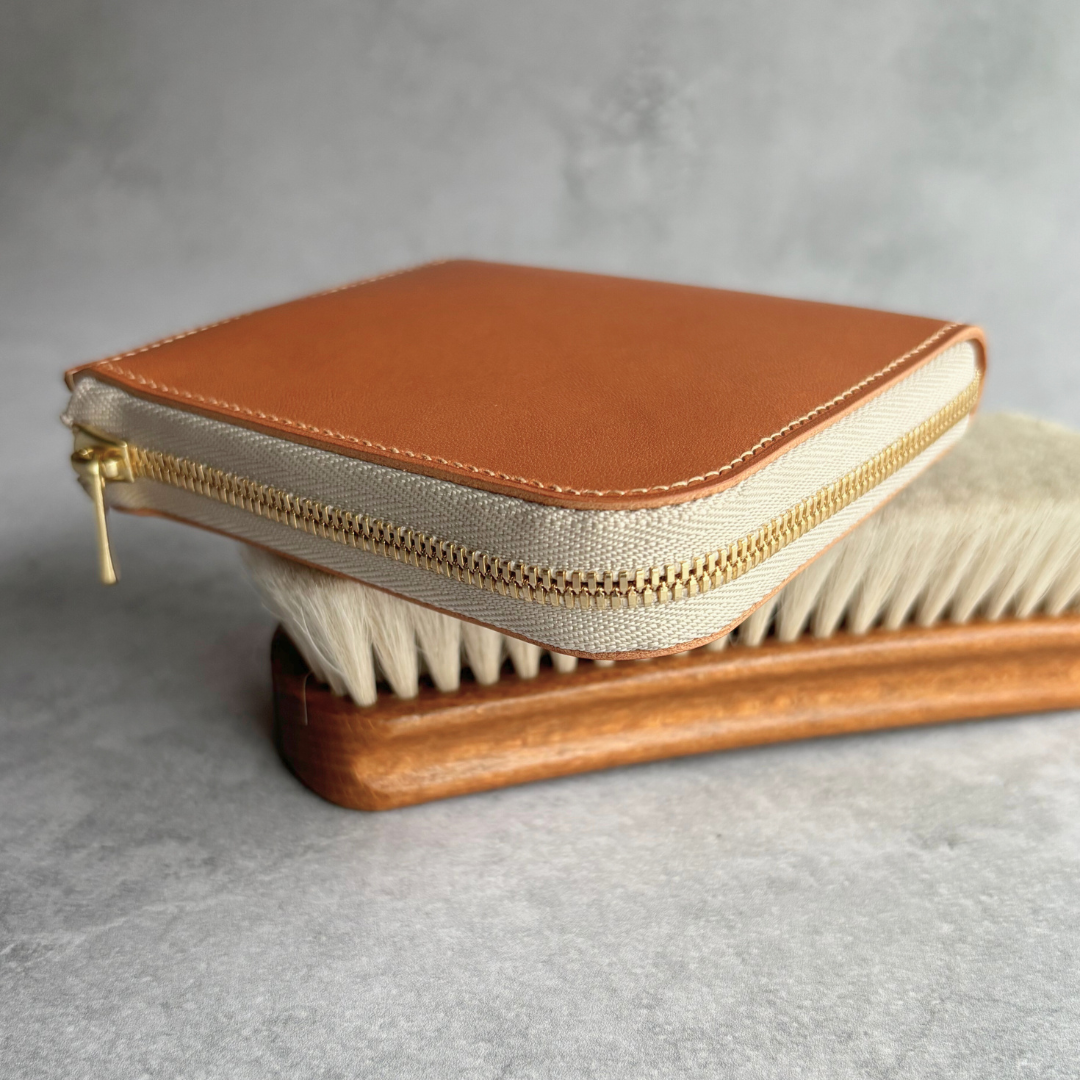 染料仕上げによる上品な発色とツヤが目を引き、手に取るとサラッとした質感が心地よく手に馴染みます。