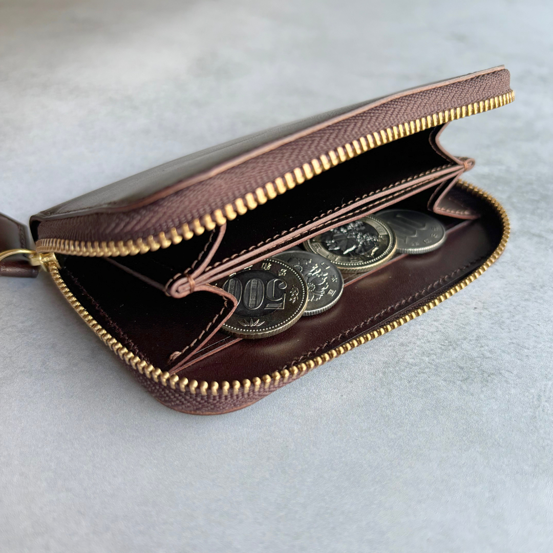 ラウンドファスナー式で大容量のため、40枚程度のコインが入ります