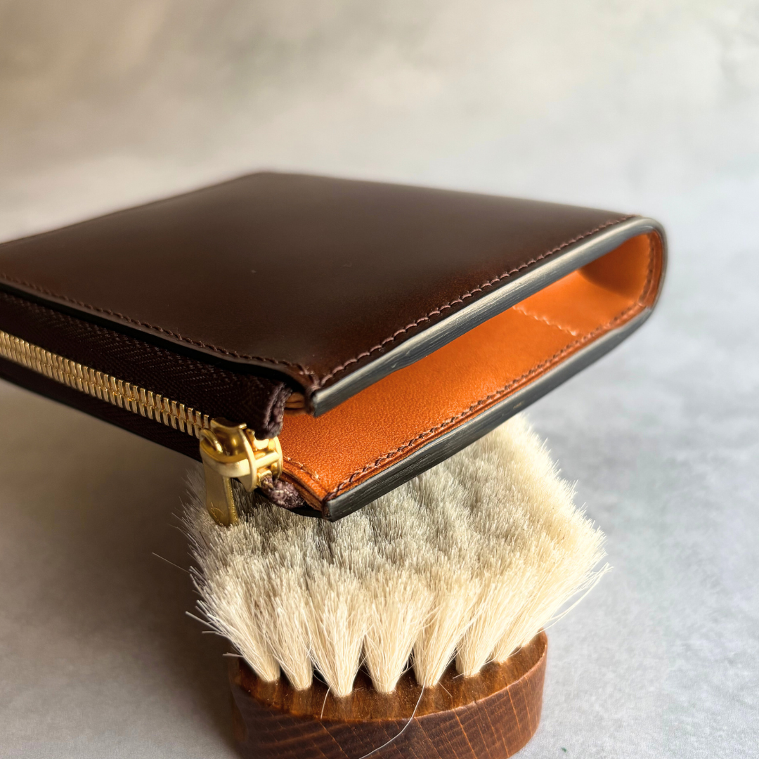手間がかかる一方で、手触りが良く美しい見た目になるとともに、摩耗や水分から革を守る効果もあり、耐久性の向上にもつながる欠かせない仕上げです。