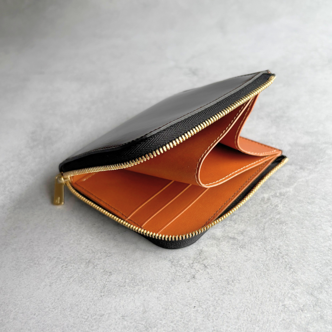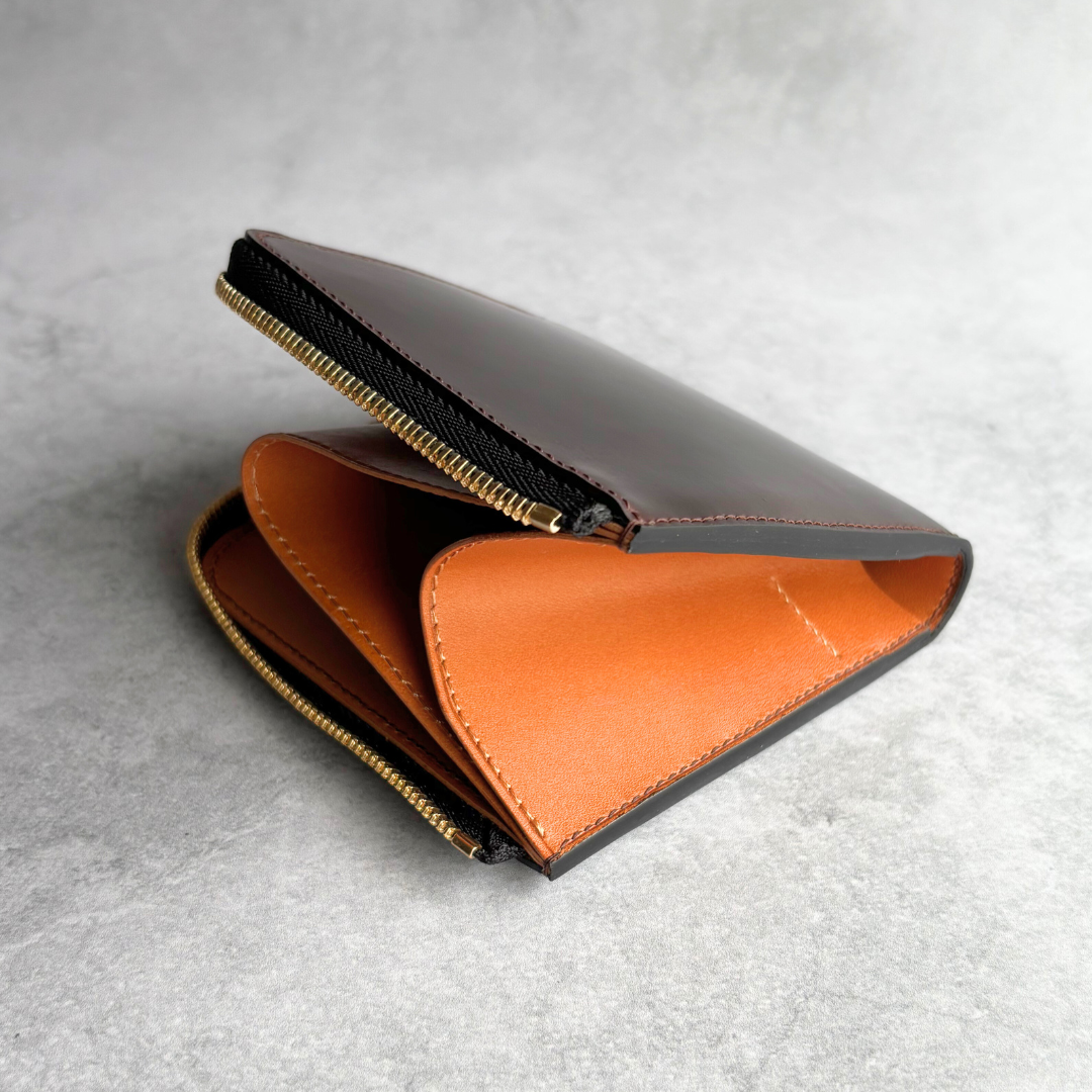 マチの裏側やコインポケット内部など、見えにくい部分にもすべて革貼りを施す贅沢な仕立て。